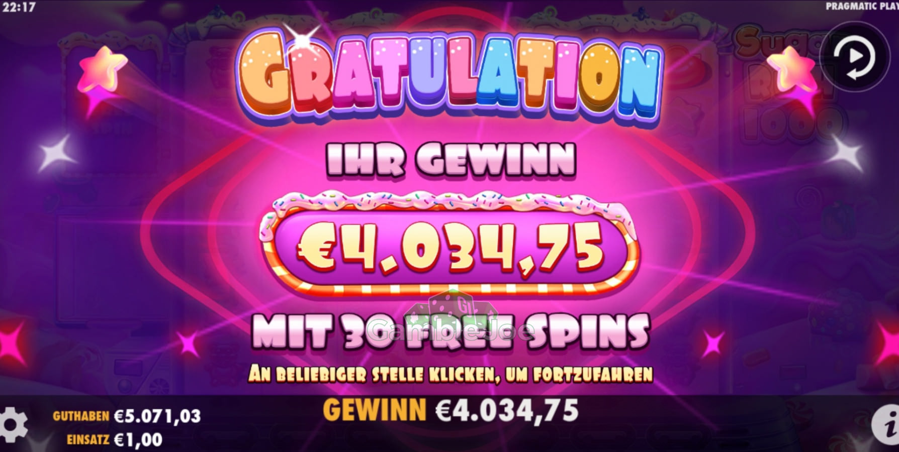 Ένα επιπλέον σημείο απόλαυσης τη στιγμή της αξιολόγησης του Sugar Rush 1000 ήταν ότι φόρτωσε την οθόνη ψεκασμού της παλιάς έκδοσης με το μήνυμα – «Κερδίστε περίπου 5.000 x στοίχημα», το οποίο ήταν εξαιρετικά απογοητευτικό όταν προσφέρθηκε αυτή είναι η ίδια πληρωμή που ανακαλύφθηκε στο αρχικό Sugar Rush. Σαφώς, αυτό ήταν ένα σφάλμα λόγω του γεγονότος ότι εάν επιθεωρήσετε τον πίνακα πληρωμών, το Sugar Rush 1000 έχει ένα τεράστιο φανταστικό ανώτατο όριο νίκης 25.000 φορές το στοίχημα. Αυτό είναι πολύ υψηλότερο από ό,τι στο παρελθόν, 5 φορές υψηλότερο, για να είμαστε ακριβείς. Για να το θέσω απλά, οι πίδακες ήταν καλά και πραγματικά ξεψύχησαν μετά το πρώτο μαχαίρι της απογοήτευσης.